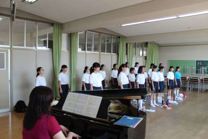 3階音楽室で特訓が始まりました。各パートごとに細部にわたり表現力に磨きをかける練習を行っていました。