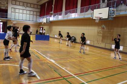 午前中、練習試合で校外へ出ていた女子バレーボール部ですが、午後は学校で練習しています。