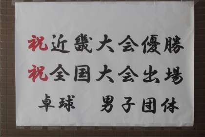 近畿大会優勝・全国大会出場を成し遂げた男子卓球部を応援するためにお祝いの掲示物を作りました。