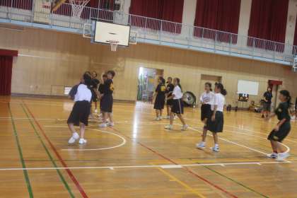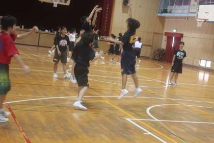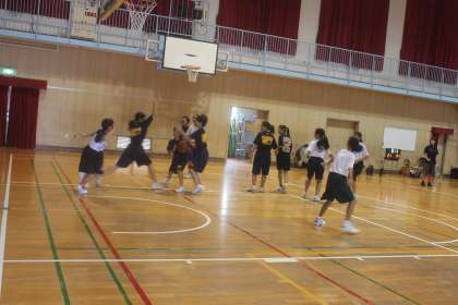 写真ではわかりにくいのですが、臨時コーチに4on4のディフェンスのフォーメーションを教えていただいているところです。