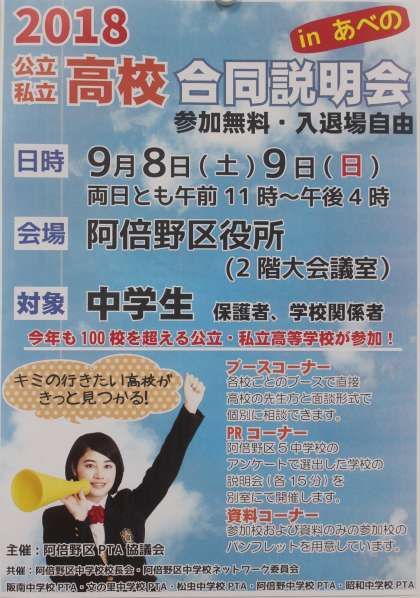 阿倍野区PTA協議会主催「高校合同説明会」のご案内