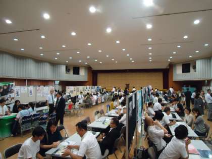 天候が小雨が降ったりして、参加者が少し少なかったですが、各高等学校のブースでは、生徒・保護者のみなさんが熱心に説明を受けていました。