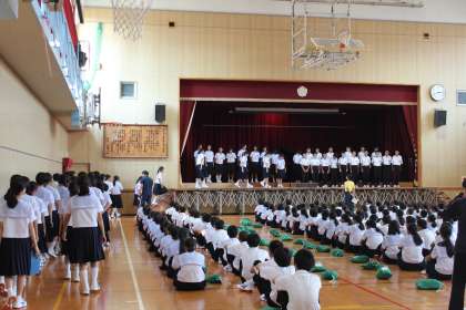 9月18日(火)6限、1年生は10月12日(金)1、2限目に開催される「合唱コンクール」のリハーサルを体育館で行いました。