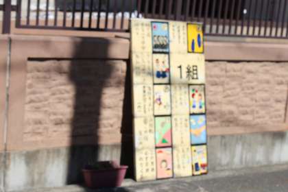 1年前取り付けられた現2年生のエコかるたが外されています。そうです、1年たったので、1年生が作ったエコかるたと交換されるのです。これでフラワーロードがモアリニューアルします。