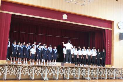 3年生は朝からの統一テストを終え、6限は合唱コンクールの練習です。この時間は体育館の割り当てがあったので、各クラスで使うことになりました。しかし、時間は50分。クラス数は7。50÷7=7…1 1クラス当たりの時間は7分です。