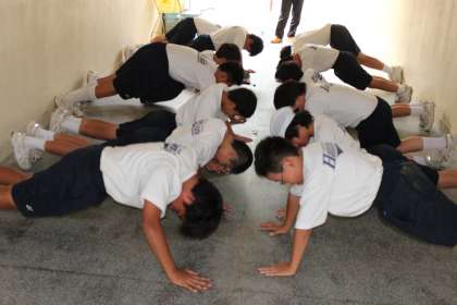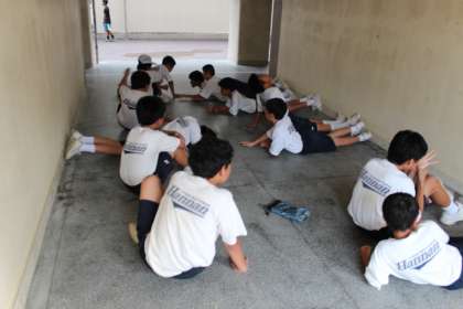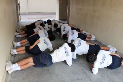 体幹トレーニング(1分)⇒インターバル⇒プッシュアップ(30回)です。