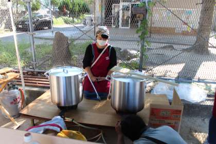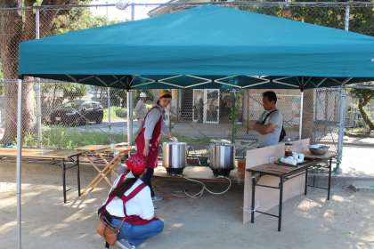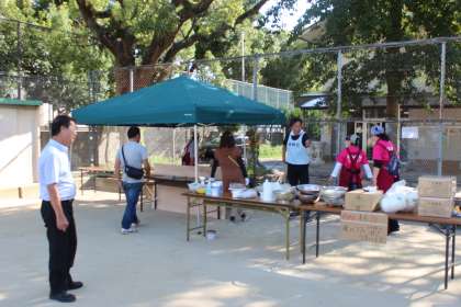 晴明丘開館前のテニスコートでは、炊き出しの訓練です。