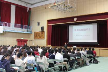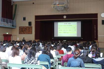 1、2年生の保護者を合わせて約250名の保護者の皆様にご参加いただき、学校長のあいさつの後、坂口進路指導主事より入試制度、授業料支援制度、今後の進路日程等の説明を行いました。