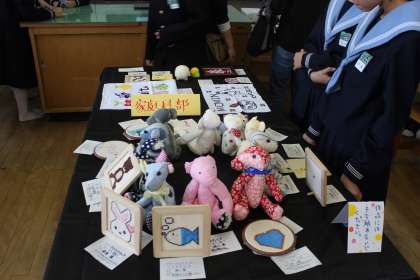 家庭科部 1年生はテディーベアとクロスステッチ、2・3年生は自分が作りたい作品を作成し展示しました。