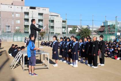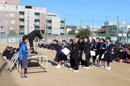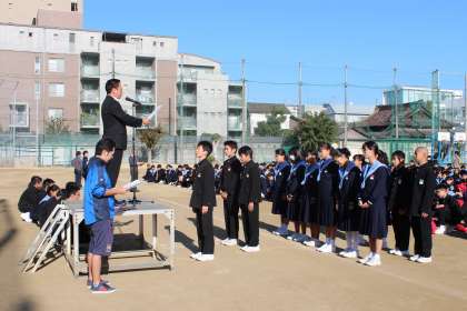 10月22日(月)朝、全校集会で水泳部の生徒たちに校長先生から表彰状が授与され、生徒全員から大きな拍手で祝福されました。おめでとうございます!