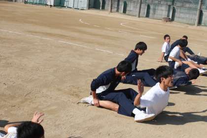 「腕立て伏せ」をして、次に「腹筋」をします。