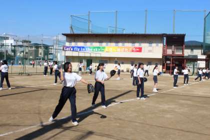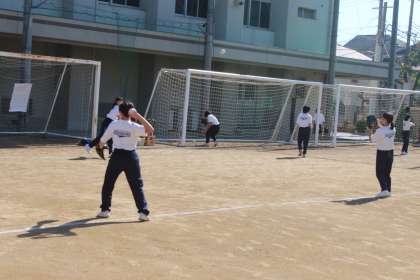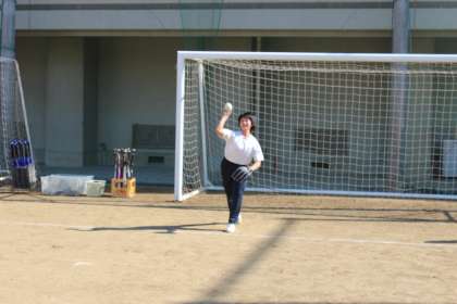 あまりしたことないスポーツだと思いますが、上手に投げたり受けたりしていました。