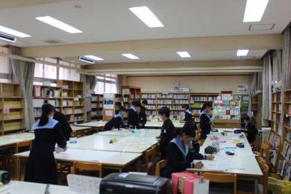 1年図書委員会の様子です。掲示物の作業をみんなで協力して作成していました。