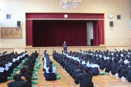 集会では、島原学年主任より、最近全校集会のときや学年集会での移動の時に喋りながら移動するのが目立つので喋らないことを意識すること、またそれを習慣づけて行くことについて、お話がありました。