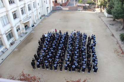 11月16日(金)朝、3年生は、テニスコートに全員が集合して、卒業アルバム用全体写真を撮影しました。朝の冷え込みが厳しい中でしたが、各々笑顔で撮影に臨んでいました。