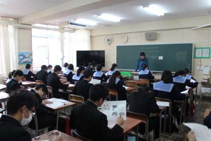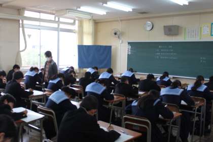 上の写真は3年生の美術です。作業もあるので45分間のテストです。