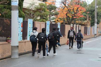 くすのき学級の3年生1名と1年生3名が大阪市キャリア教育支援センターに実習に出かけるところです。