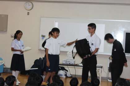 服装の説明の後は、持ち物や学校のルールを説明しました。