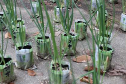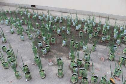 1年技術科で9月から育て始めたネギが順調に大きくなっています。