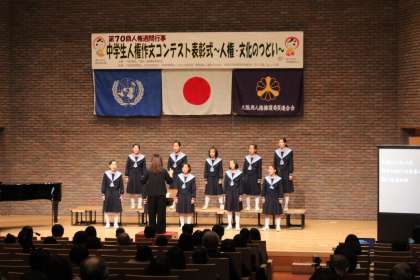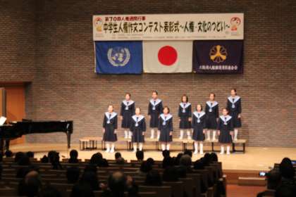 12月9日(日)13時30分より「第70回 人権週間行事 人権・文化のつどい」が阿倍野区民センター小ホールで行われました。