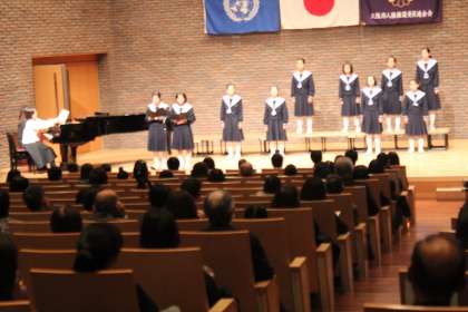 第2部は「中学生ミニコンサート」です。菫中学校放送部の司会進行で、阪南中学校合唱部(大阪府合唱コンクール金賞)の合唱と墨江丘中学校吹奏楽部の演奏が披露されました。
