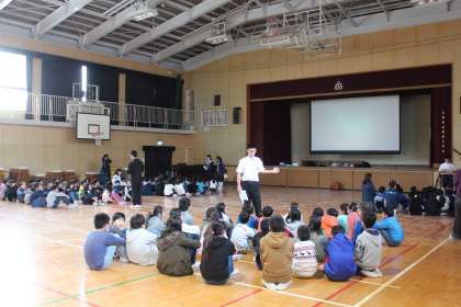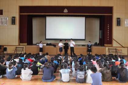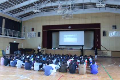 12月11日(火)午後、生徒会執行部5名が、阪南小学校5年生を対象に「阪中紹介」を行いました。