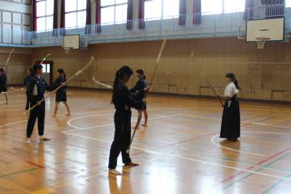 1年女子は、体育の授業で「なぎなた」に取り組んでいます。