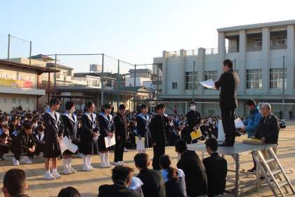 11月2日(金)放課後に実施しました「第2回漢字検定」において、優秀な成績を収めた生徒たちが表彰され、全校生徒から大きな拍手で祝福されました。最優秀賞1名、優秀賞3名、努力賞5名のみなさん、おめでとうございます!