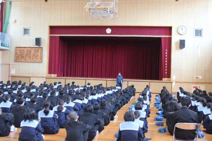 12月19日(水)4時間目に「冬休み事前指導」を体育館で行いました。