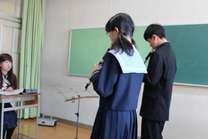3階音楽室からリコーダーの演奏が聞こえています。