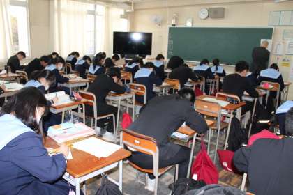 3年3組は近藤先生の理科です。体育の後ですが、静かに勉強していました。