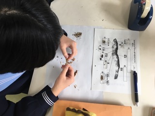 3/7 2年理科の授業 「煮干しの解剖」2