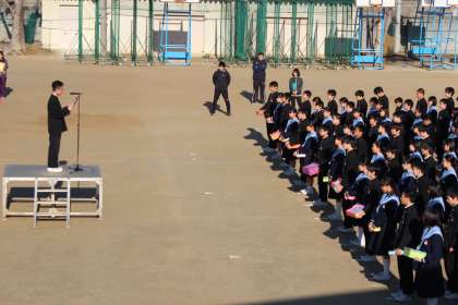 3年生を代表して、前生徒会副会長Iさんから1・2年生へ激励の言葉が送られました。