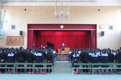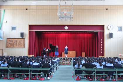 3年生を送る会プレゼンツの動画で卒業気分が上がったところで歌の練習に入ります。