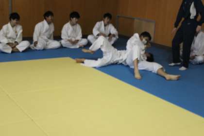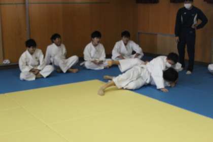 脚を絡められないようにしたいい角度、体重ののせ方、完璧に決まっています。