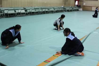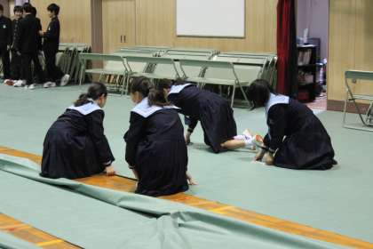 体育館の会場設営は1年生の図書・環境・風紀委員が担当します。
