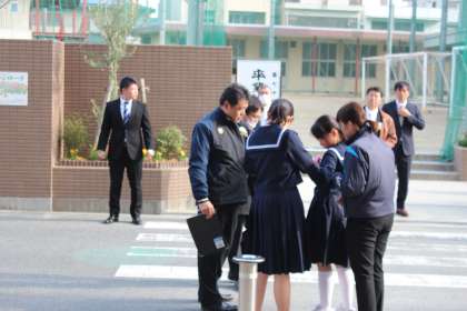 3年生の先生、今日はジャージでなく盛装でお出迎えです。