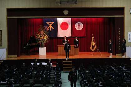 「開式の辞」の後、「国歌斉唱」「大阪市歌斉唱」「校歌斉唱」と続きます。