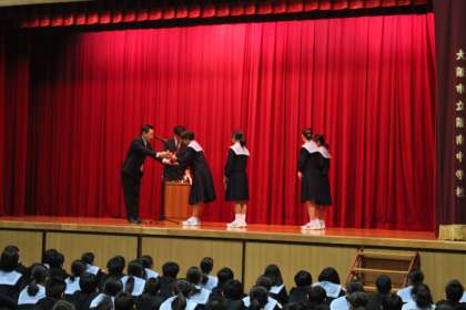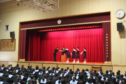 「スマイル プレー」がモットーの女子バスケットボール部への賞状伝達です。