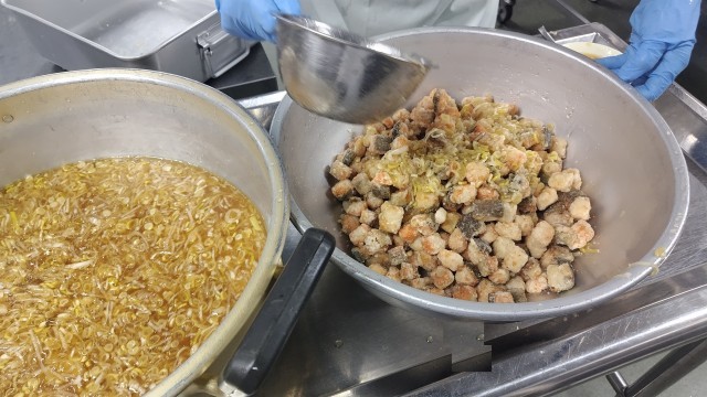 「さけの和風マリネソースかけ」は、揚げたさけに砂糖やこしょう、酢、しょうゆ、