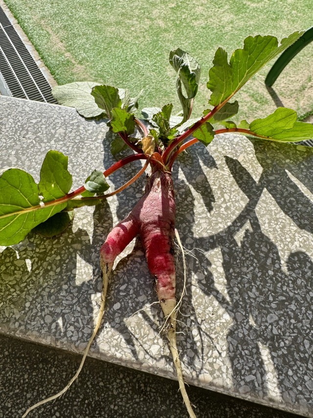 ラディッシュは足が生えたようなものが収穫できました。