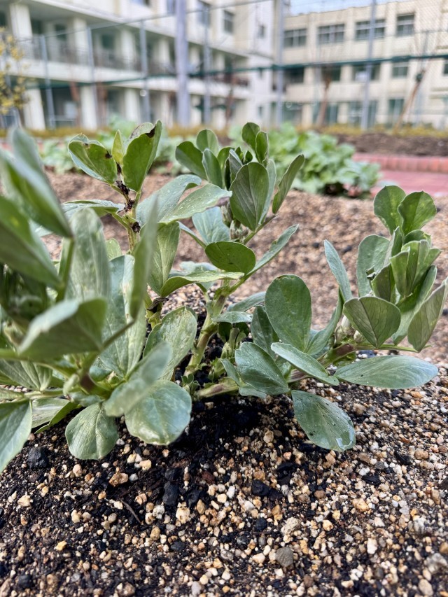 寒さに負けずそら豆が成長中です。