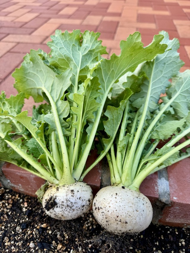 時期少しずらして種蒔きした小かぶの収穫がそろそろできそうです。