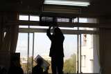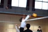 午後の体育館、バドミントン部が活動しています。 ネットを挟んでの打ち合いです。 ...
