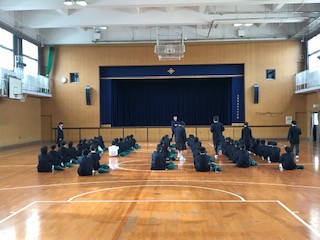 本日1年生学年集会がありました。8時10分には、ほとんどの生徒が集合していました。体育館入口では、最大発声で入ってと声をかけている生徒がいました。始まったばかりですが、松虫魂を感じました。