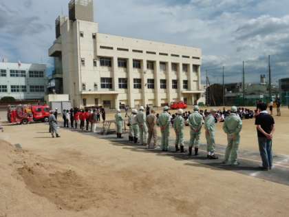 今日はお天気に恵まれ、運動場へ集合することができました。(去年は雨で、体育館で行ったからです。)日が射すと暑いぐらいでしたが、調理室から出火という想定で、約5分で運動場の松虫通よりに集合することができました。けがをしていた生徒をおんぶして避難してくる様子にほほえましく思いました。あくまで訓練ですが、何かの時に役立ててください。というのも災害時、避難できた人は「訓練が役立った」と言われるからです。