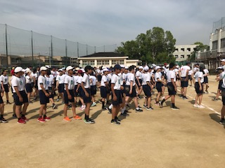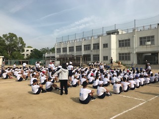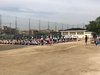 本日全校集会がありました。体育大会全体練習があるため、運動場で行われました。
