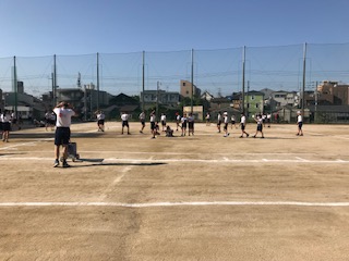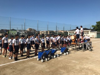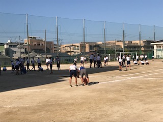 本日は、非常に良い天気です。朝の実行委員の活動は、運動場で行っています。