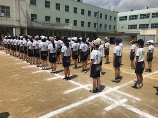 本日5.6限目、2年生学年練習2がありました。2クラスでの取り組みでしたが、暑いなか真剣に取り組んでいました。