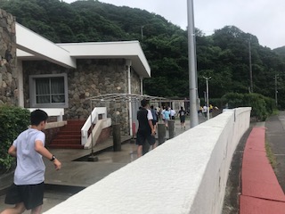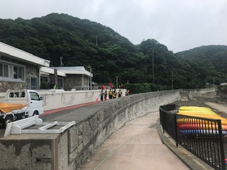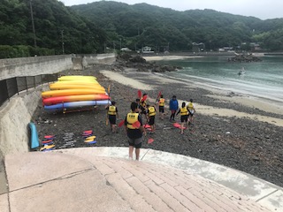 只今より、海の活動が始まります。雨が降っていますが、海の状態は穏やかです。